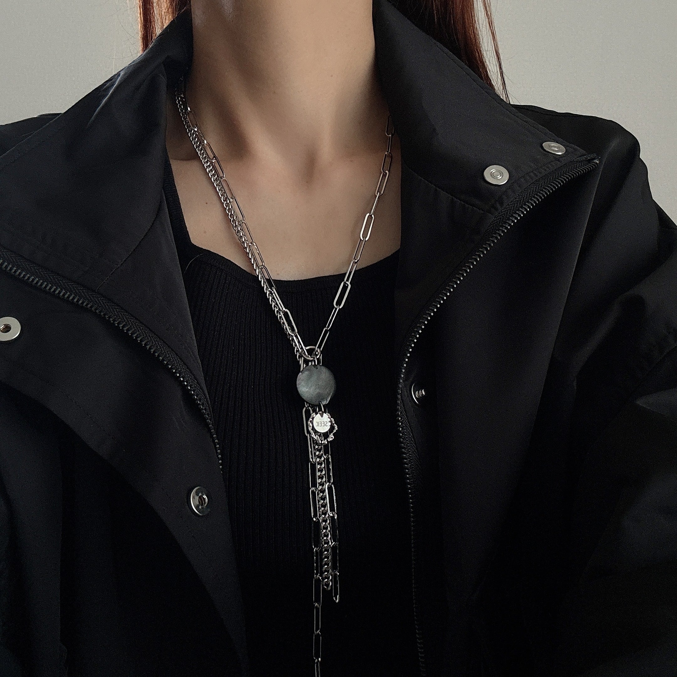 シンプルな装いに一点投入するだけで、あなたの“モードレベル”を引き上げてくれるネックレスです