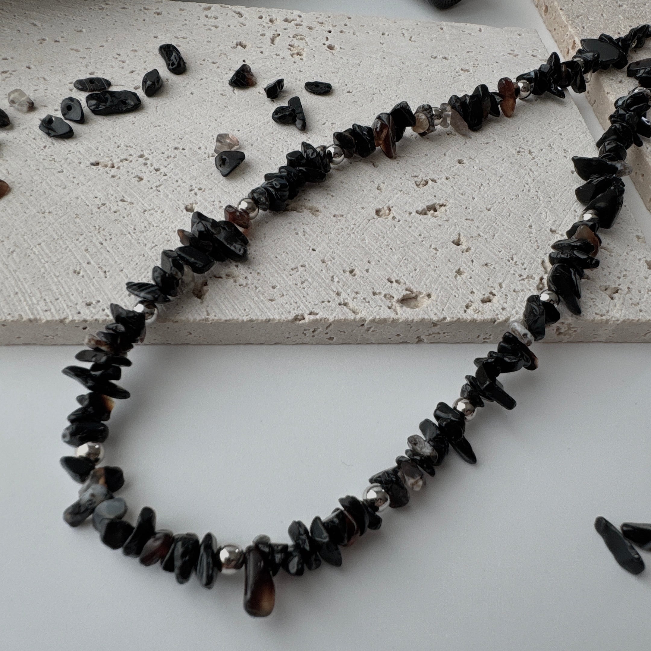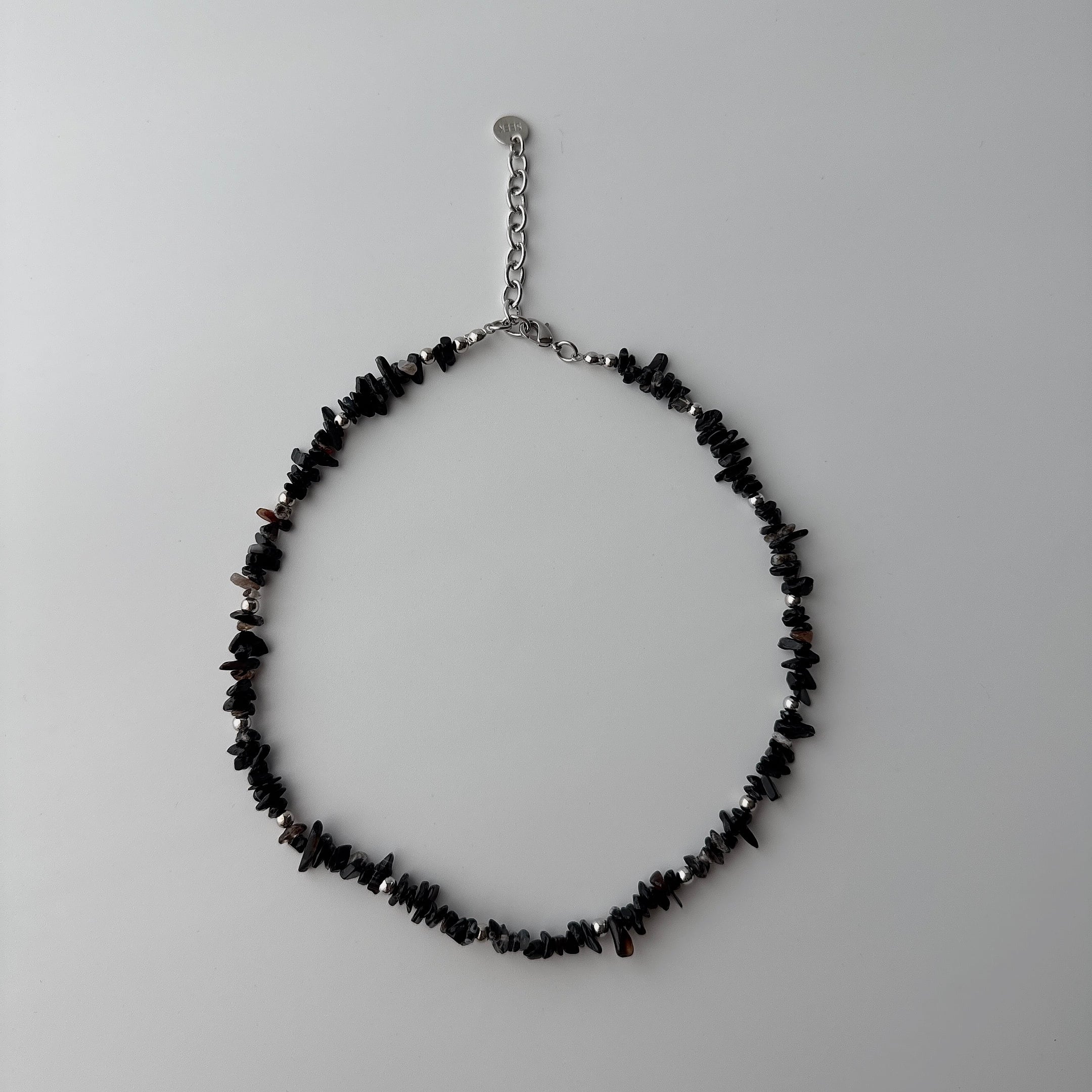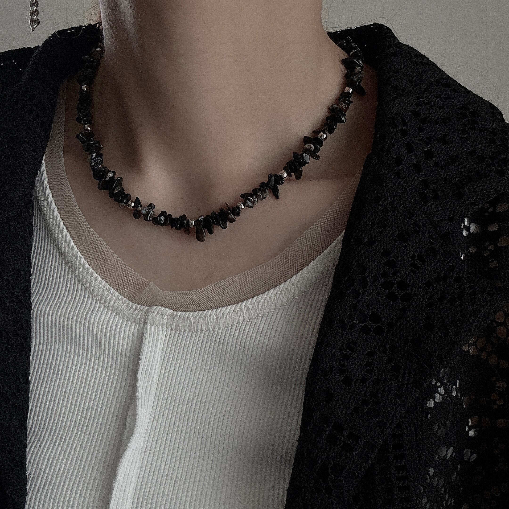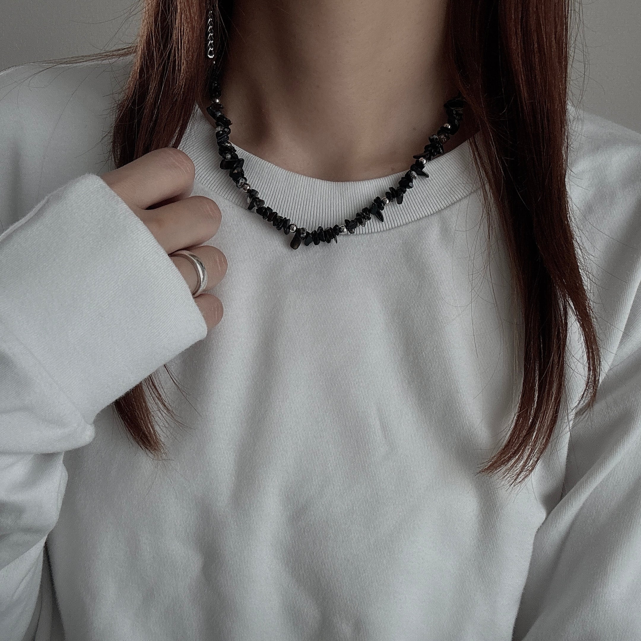 天然石オニキスのさざれ石を贅沢に使用した、モードな印象のネックレス