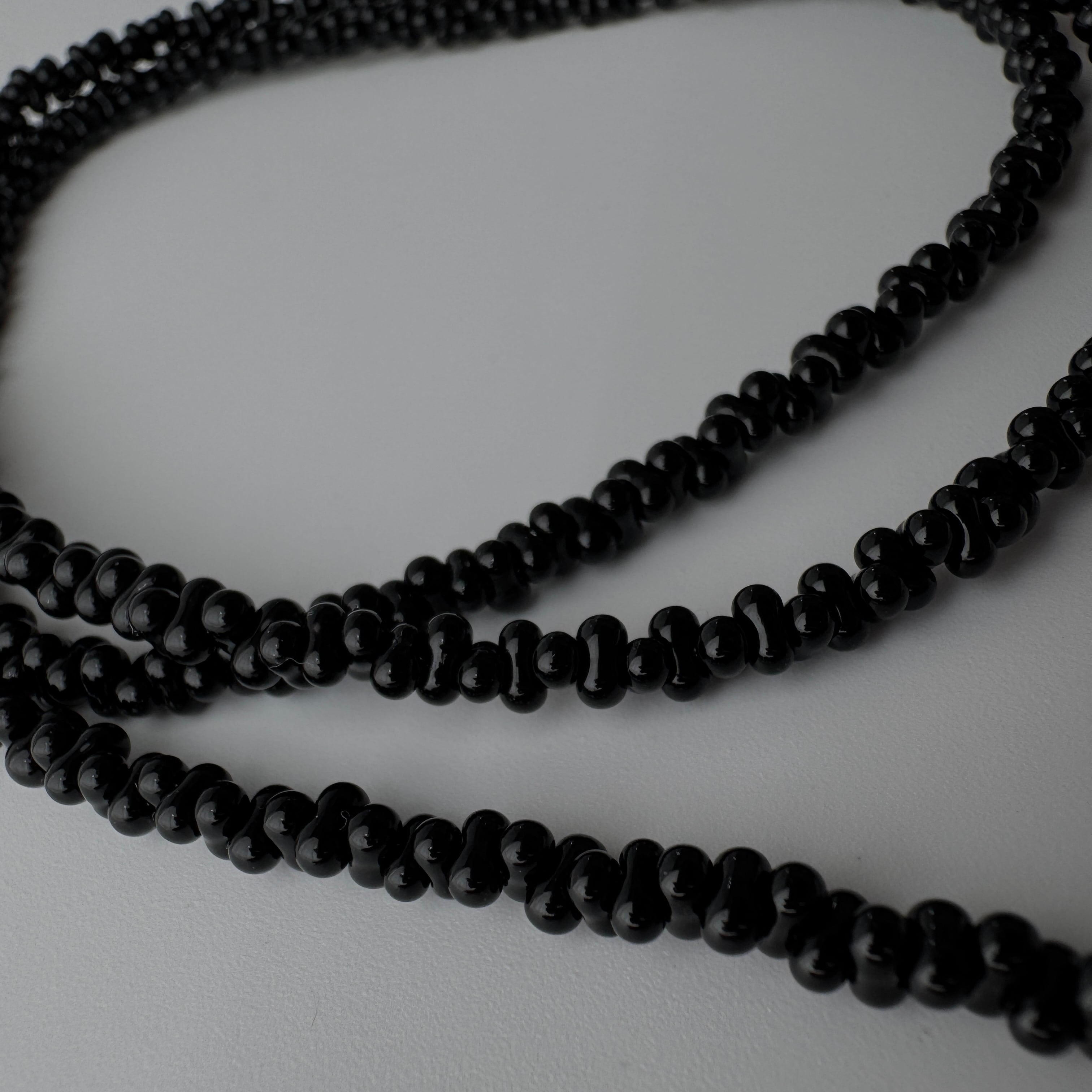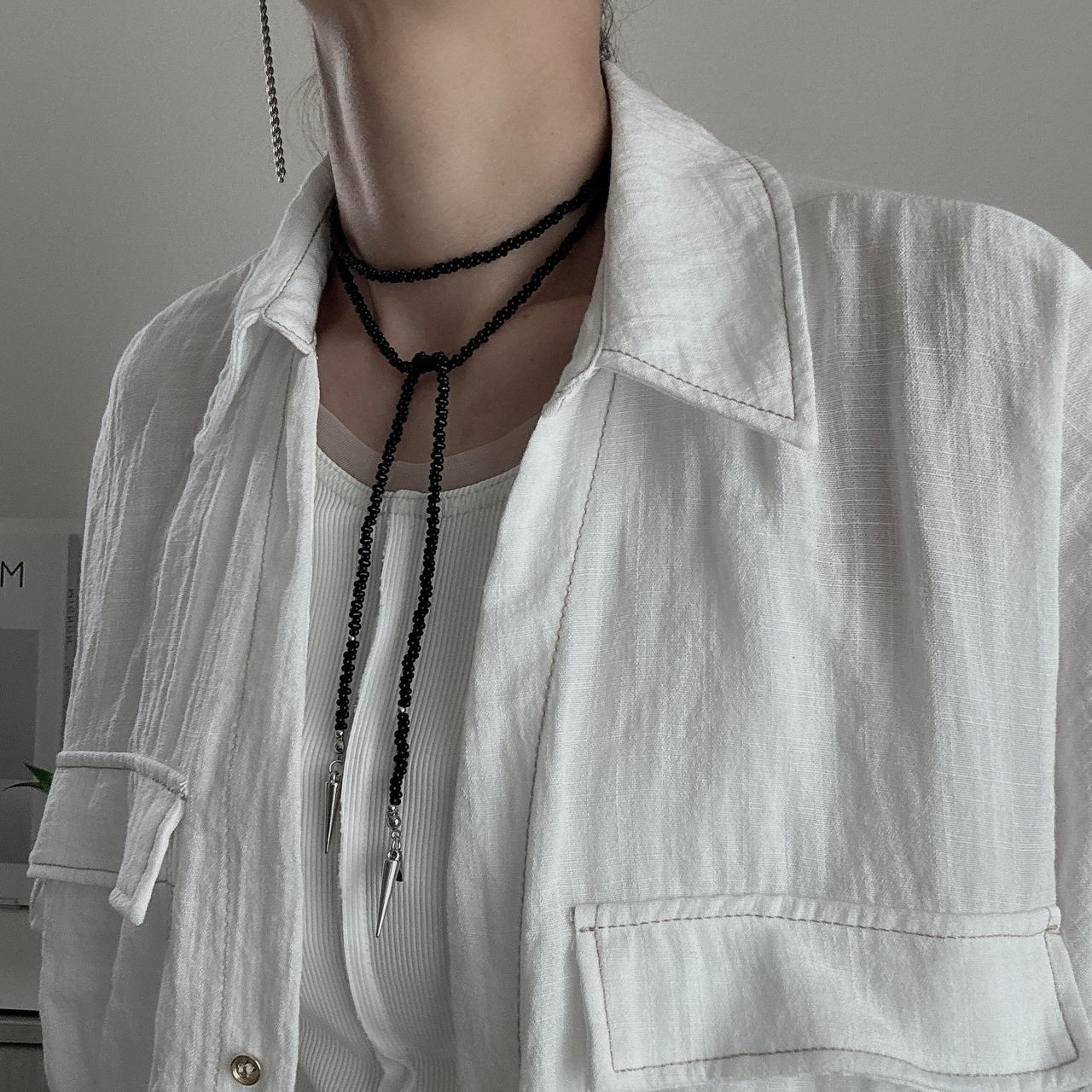 ファルファーレビーズは独特の立体感を持つ形状が特徴で、光を受けて繊細に輝き、首元をモードに演出します