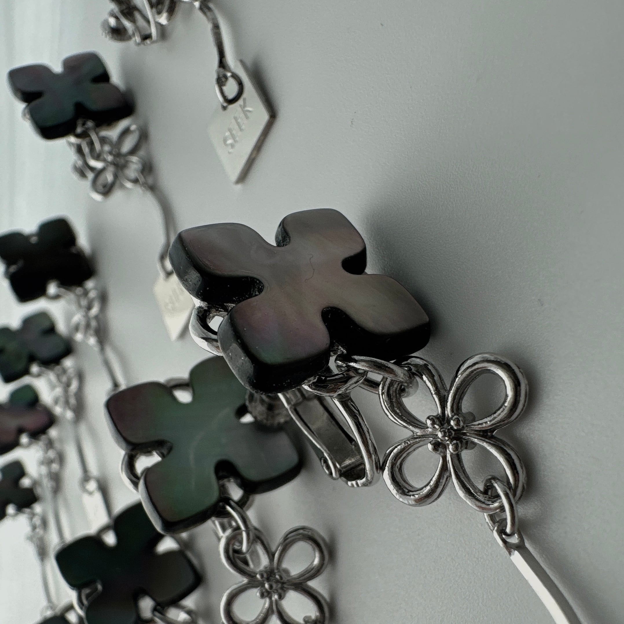 まるで四つ葉のクローバーのように可憐で、他にはない表情を持つ国産ボタンを主役にしたデザイン