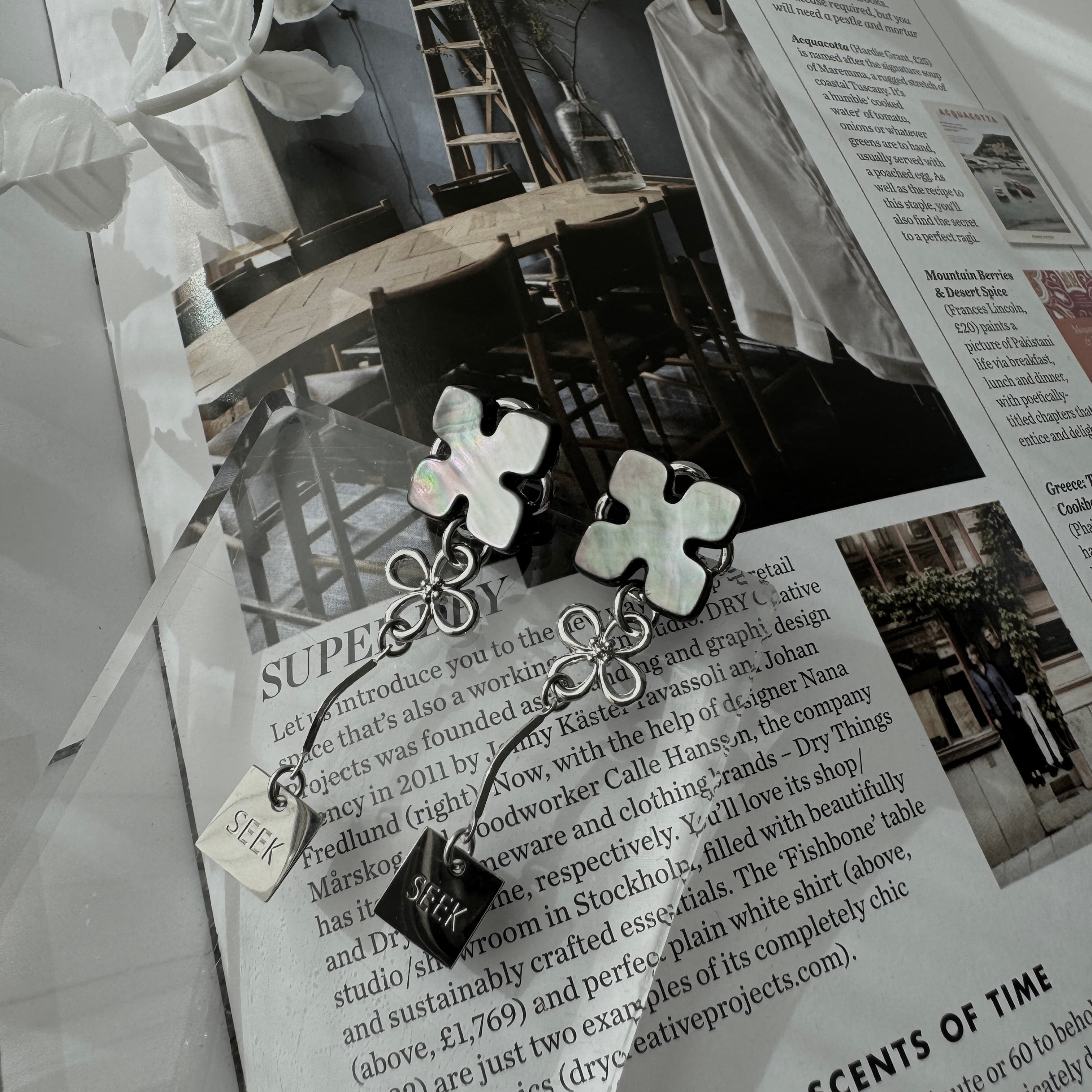 光の角度でほのかに輝くシェルの質感が、耳元を上品に彩ります