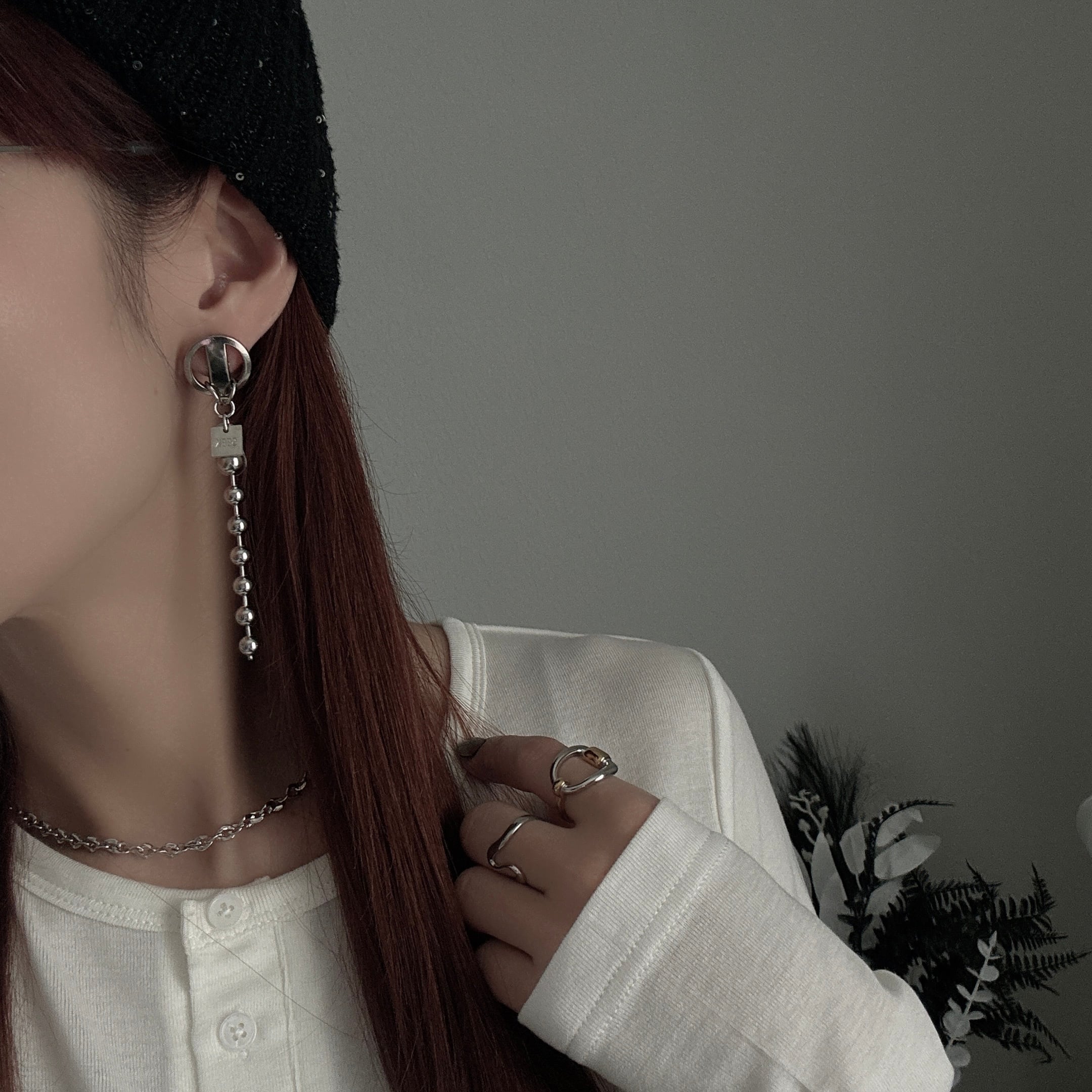 シンプルなスタイリングに一点添えるだけで、印象を引き締めてくれる耳元です