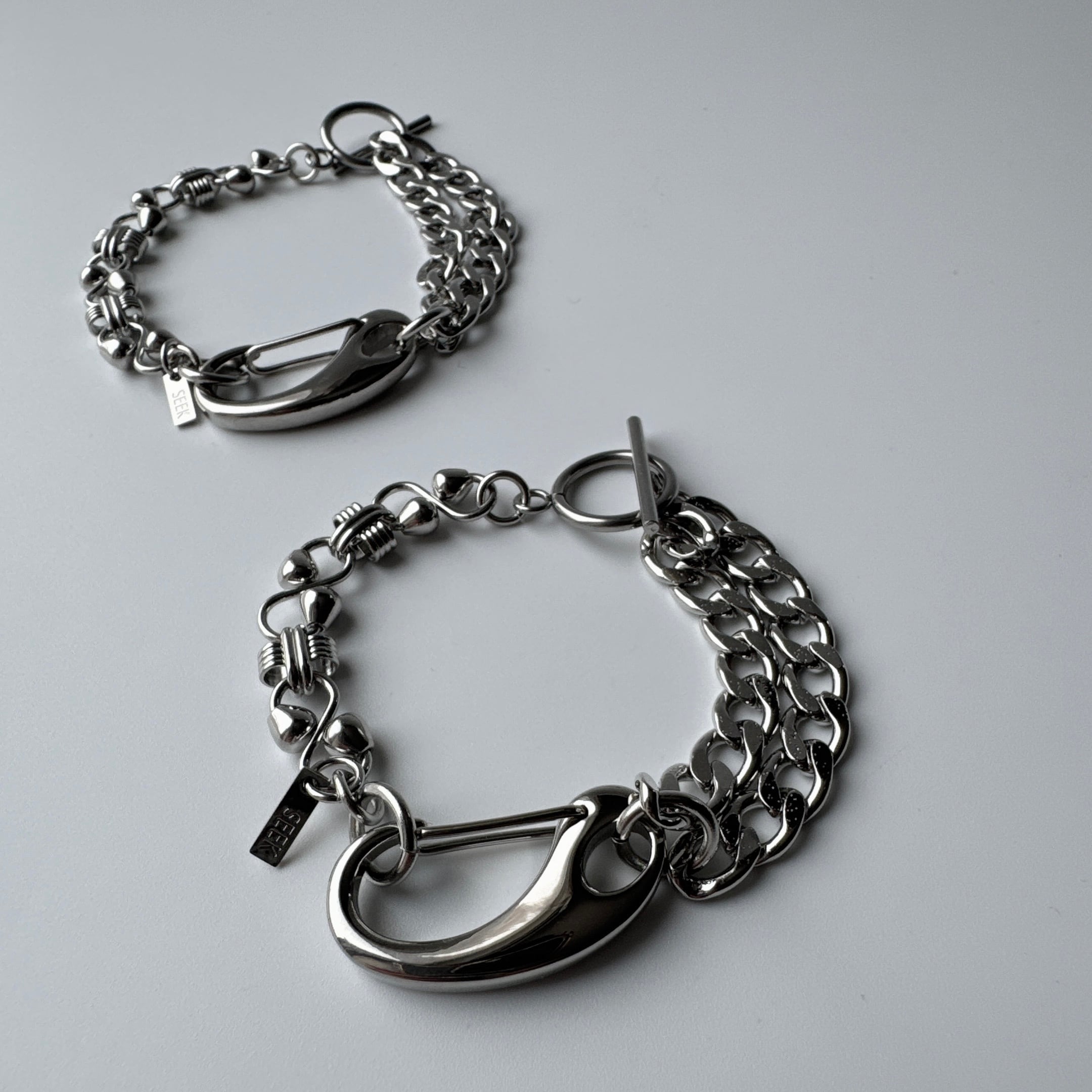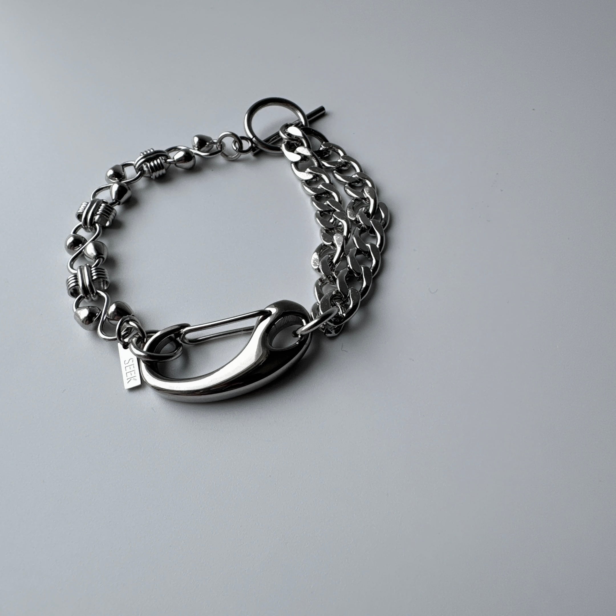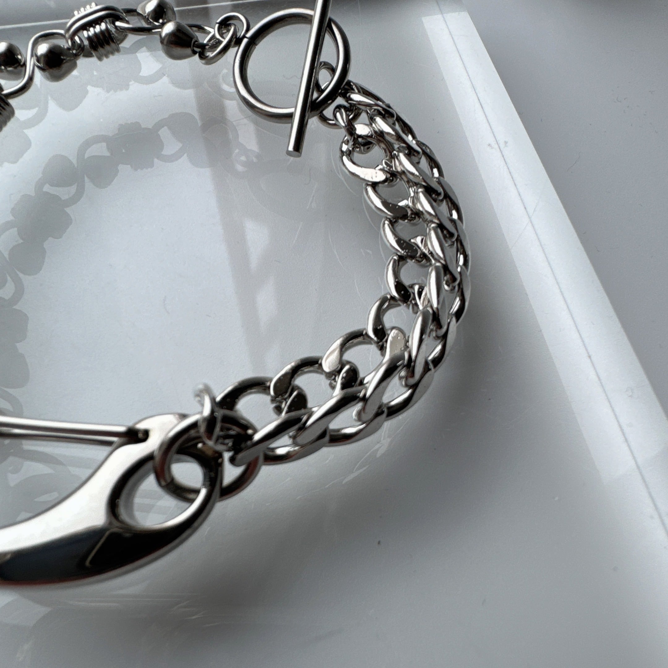 異なる表情のチェーンを組み合わせた存在感のあるブレスレット