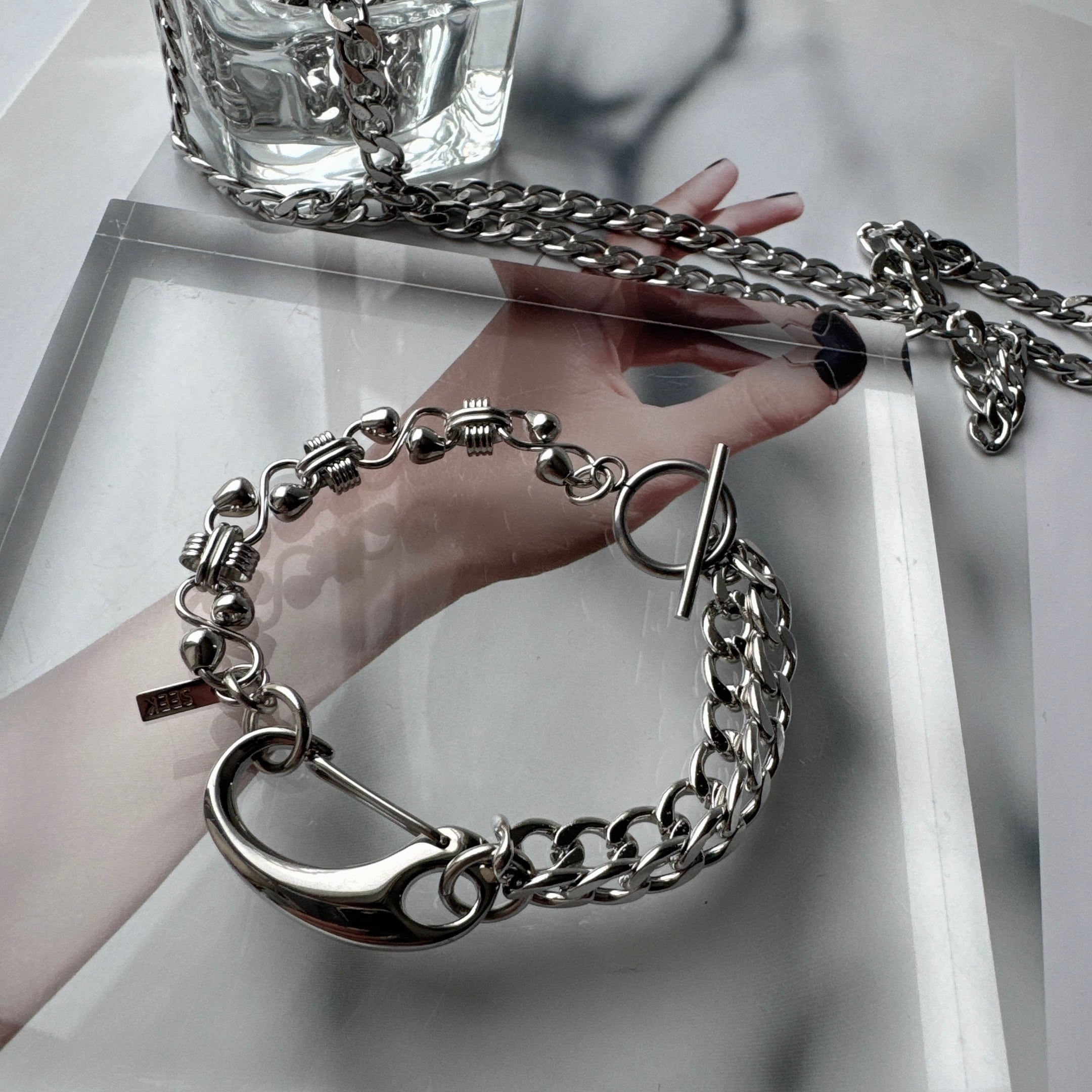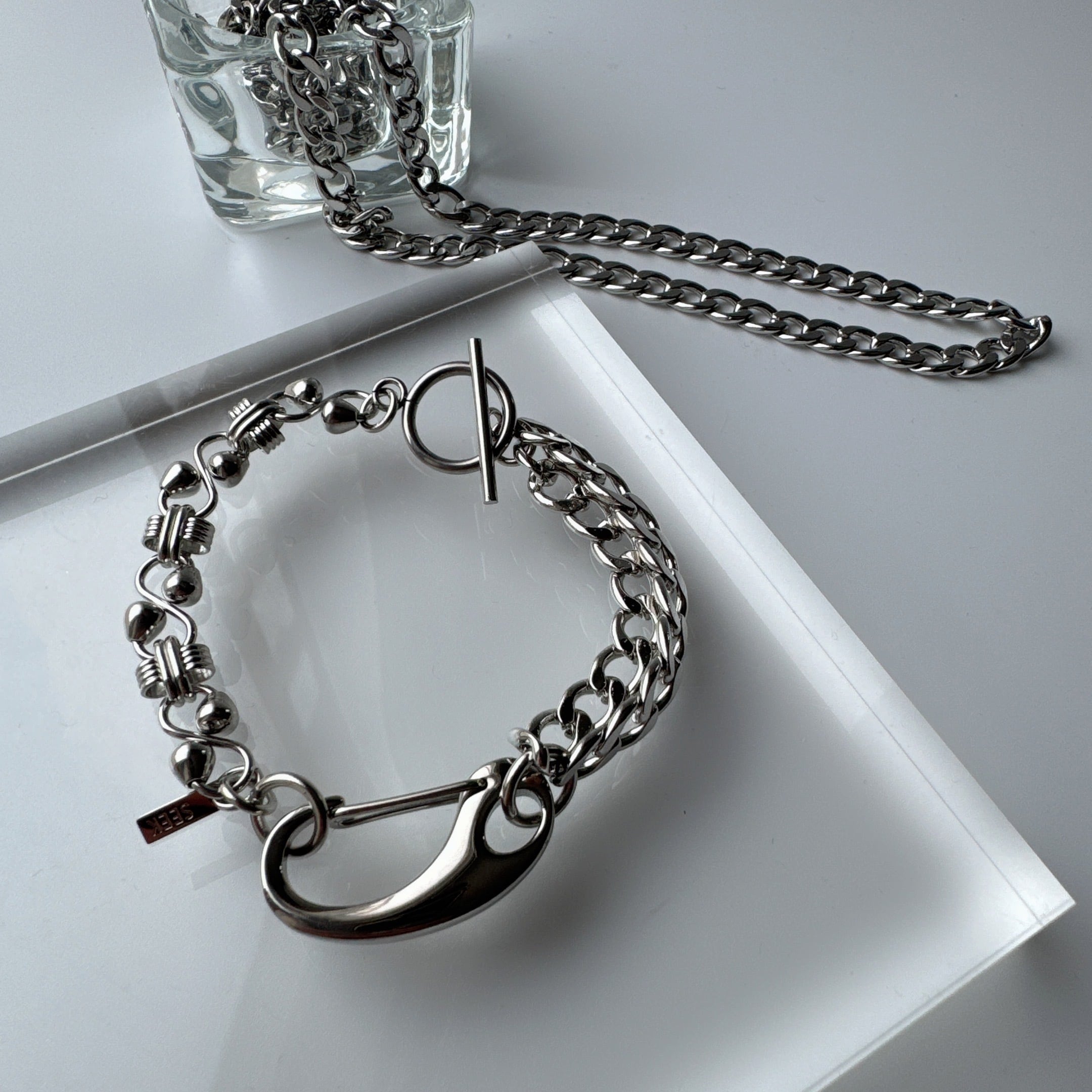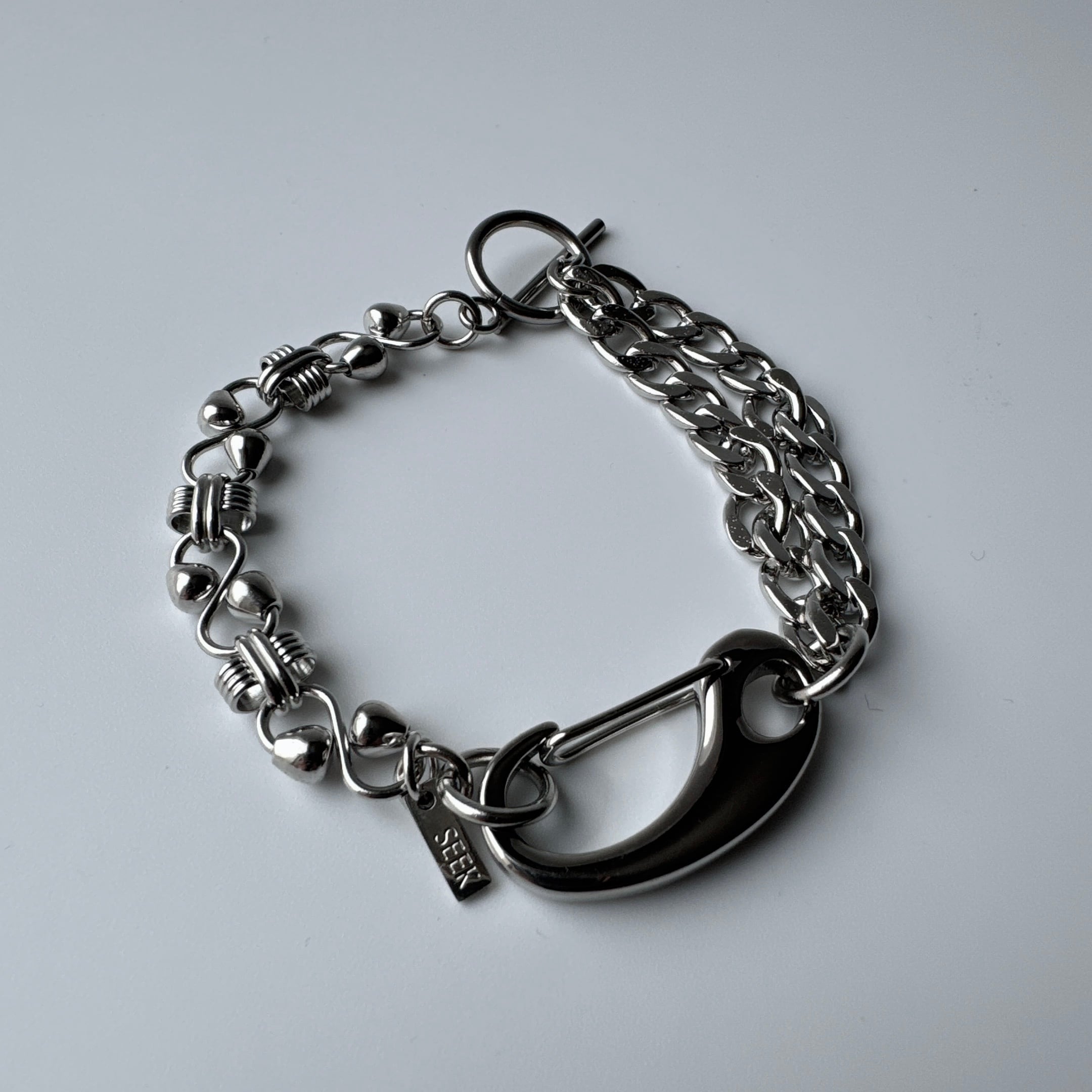 異なる表情のチェーンを組み合わせた存在感のあるブレスレット