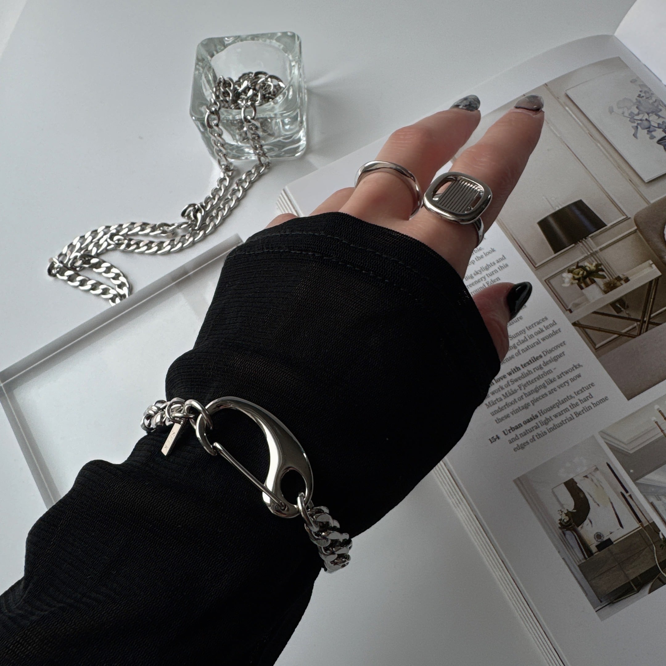 シャープなチェーンのコントラストが、