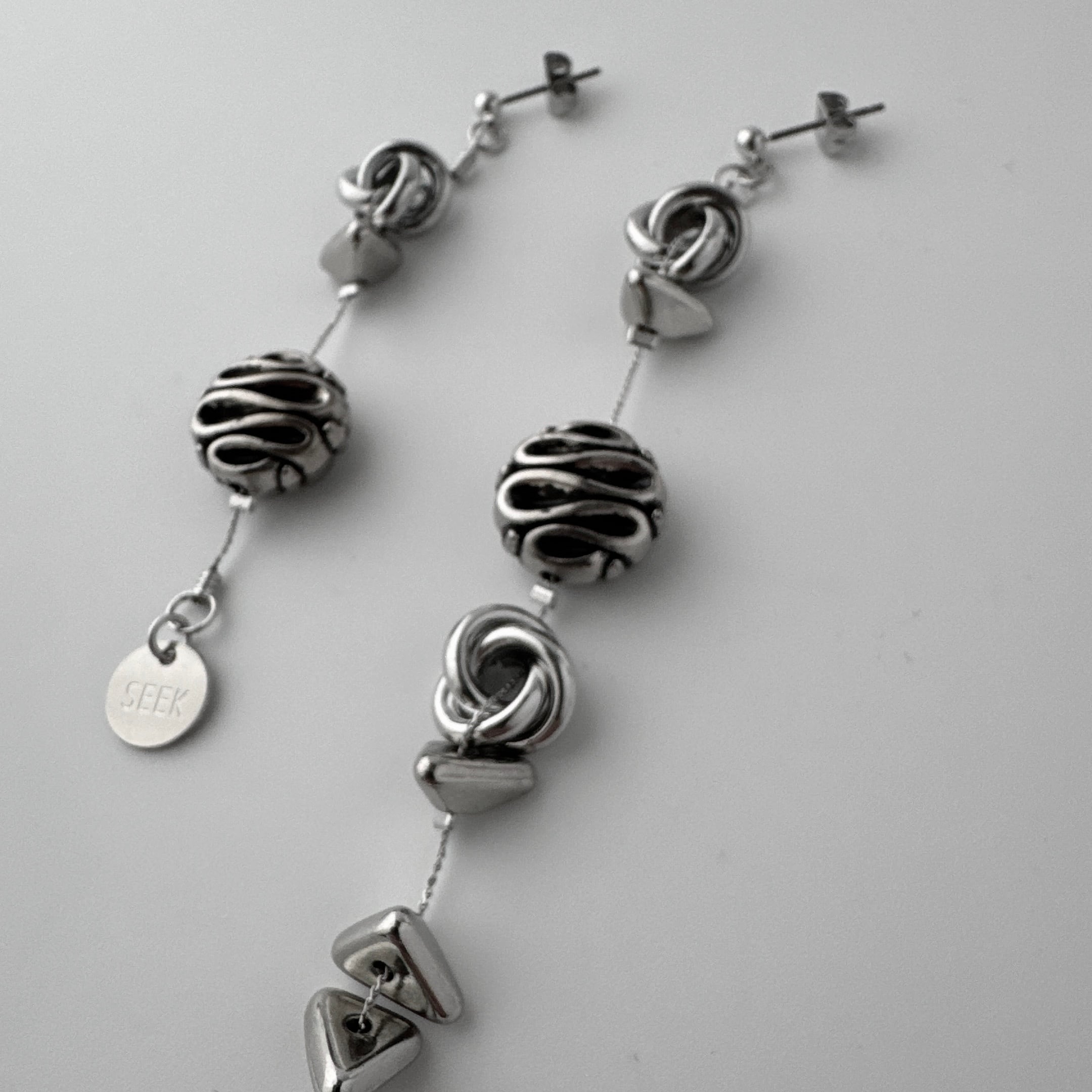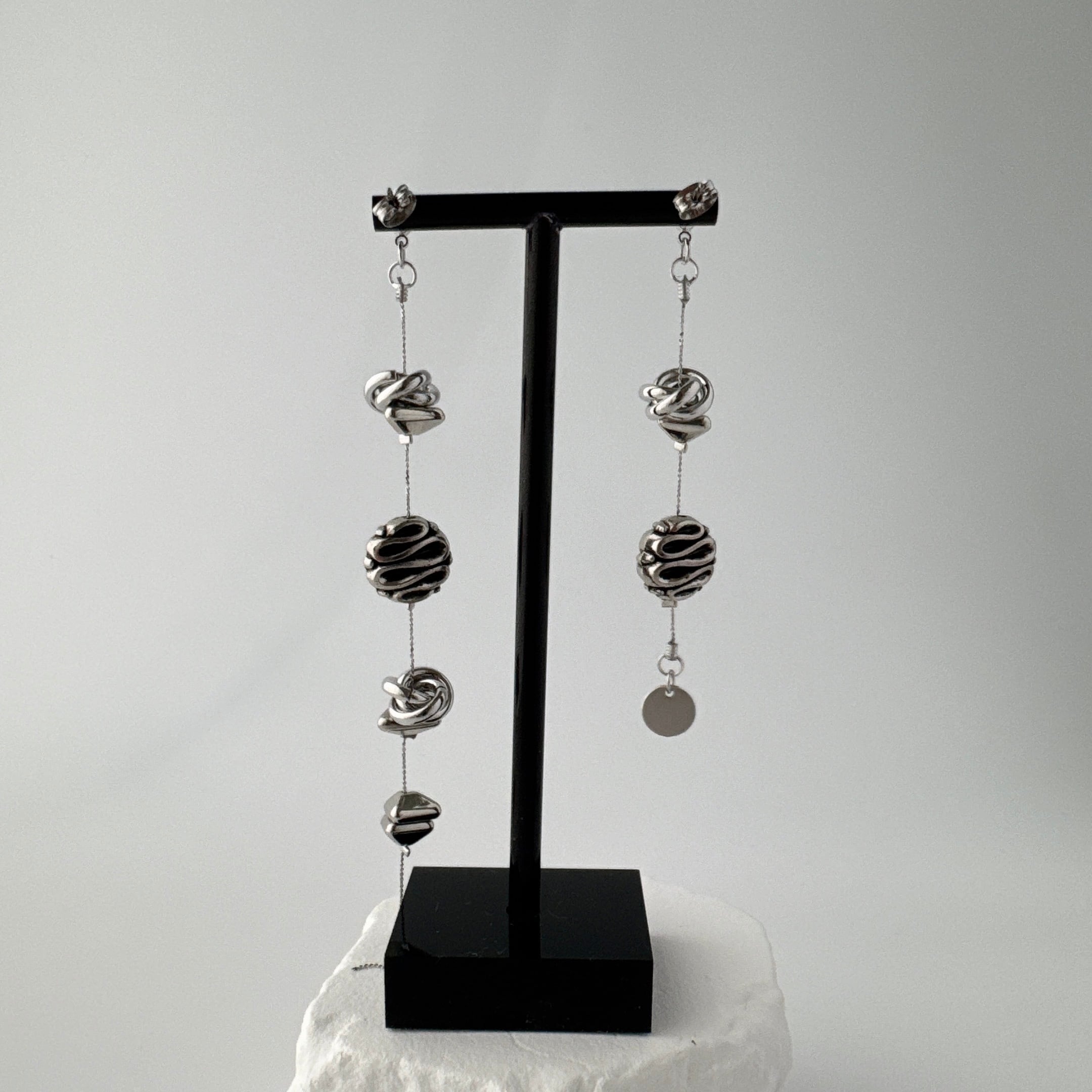 華奢なチェーンで縦に連ねたアシンメトリーデザインに仕上げました