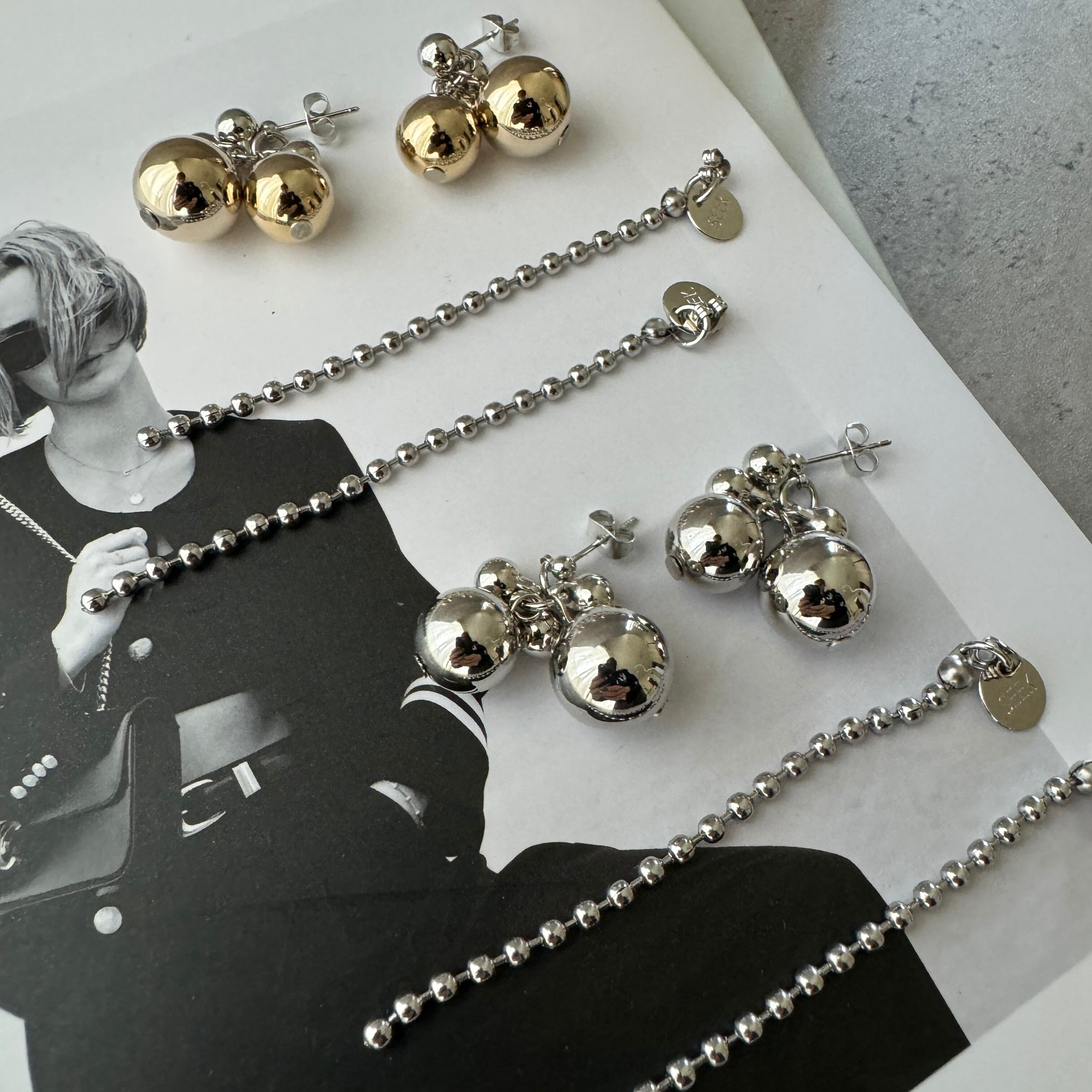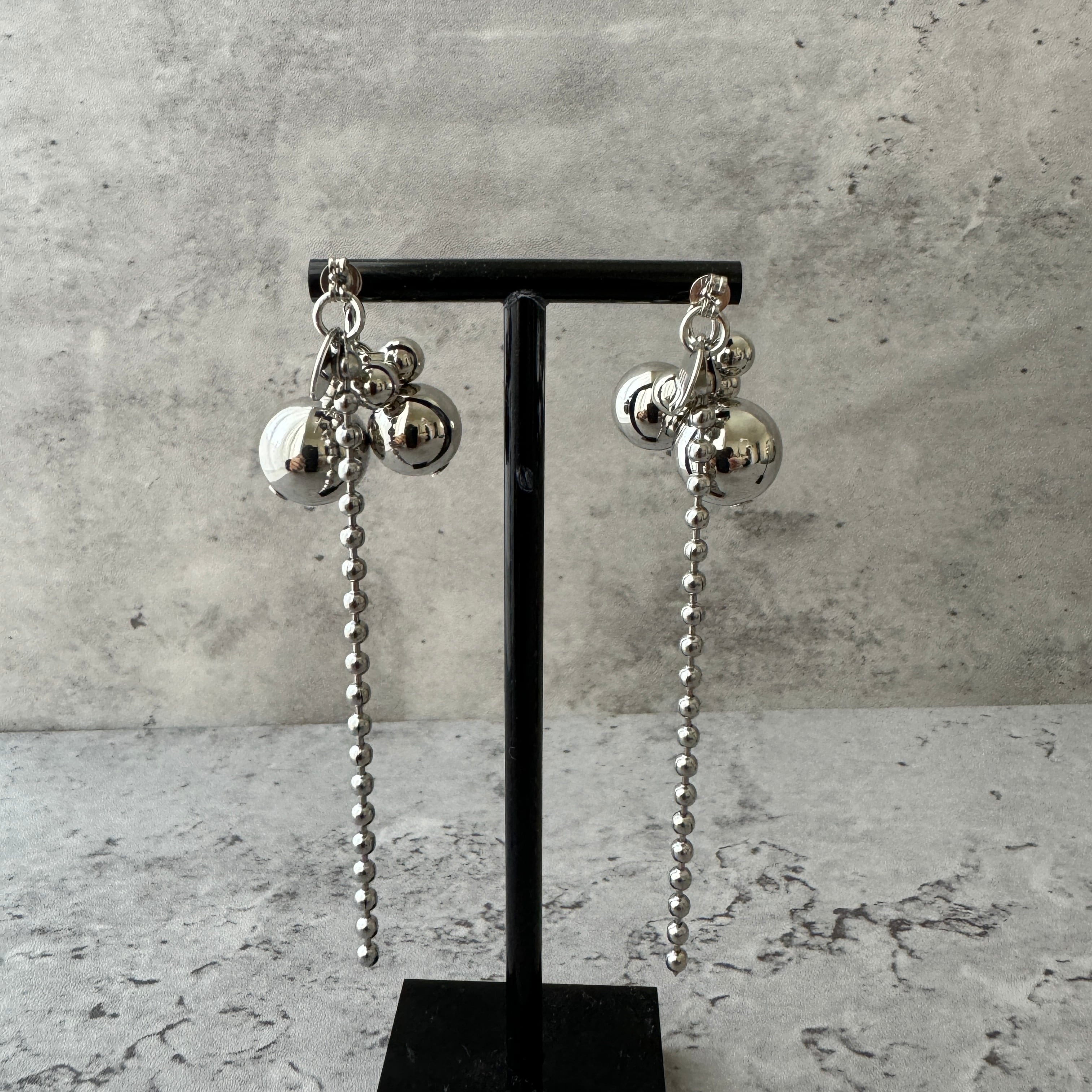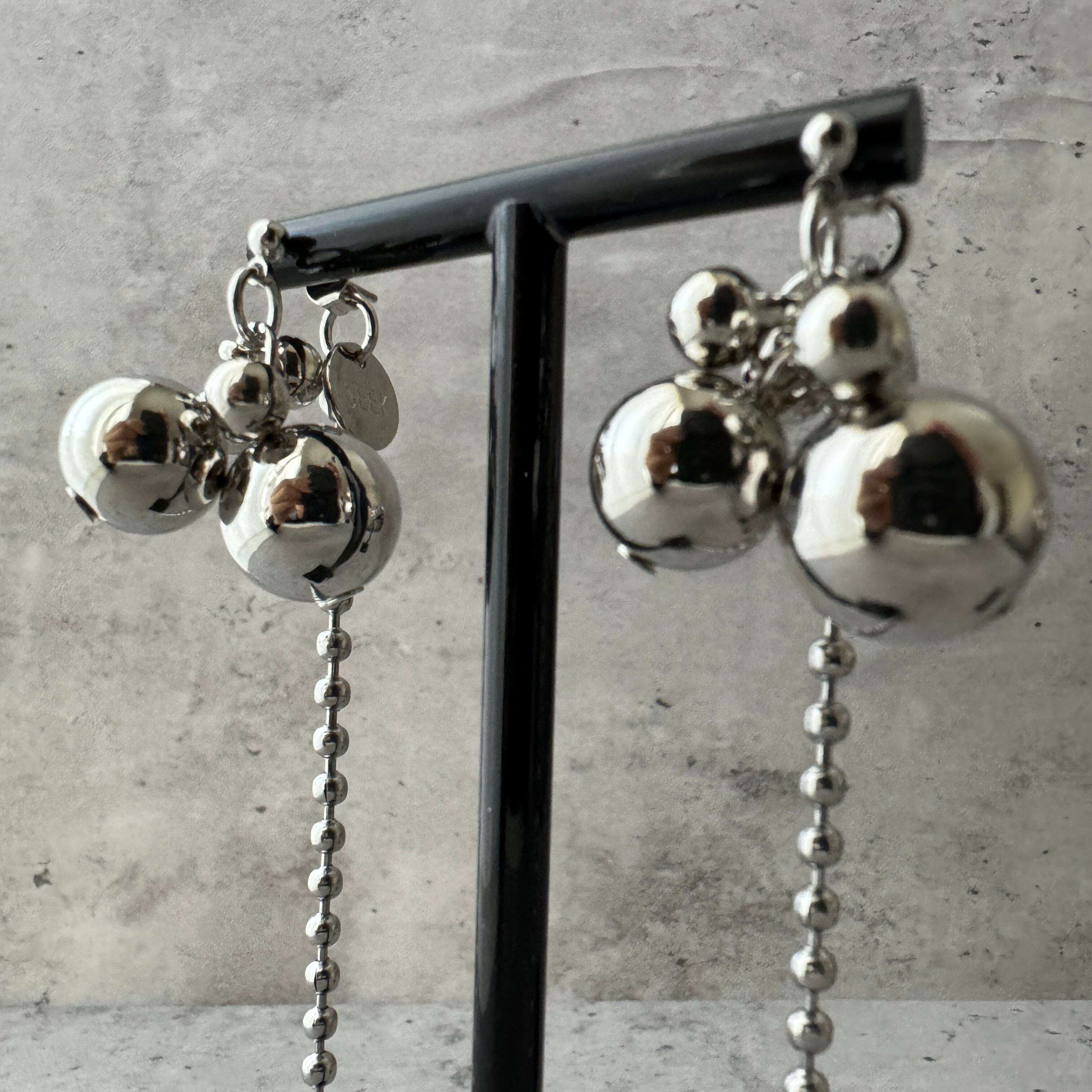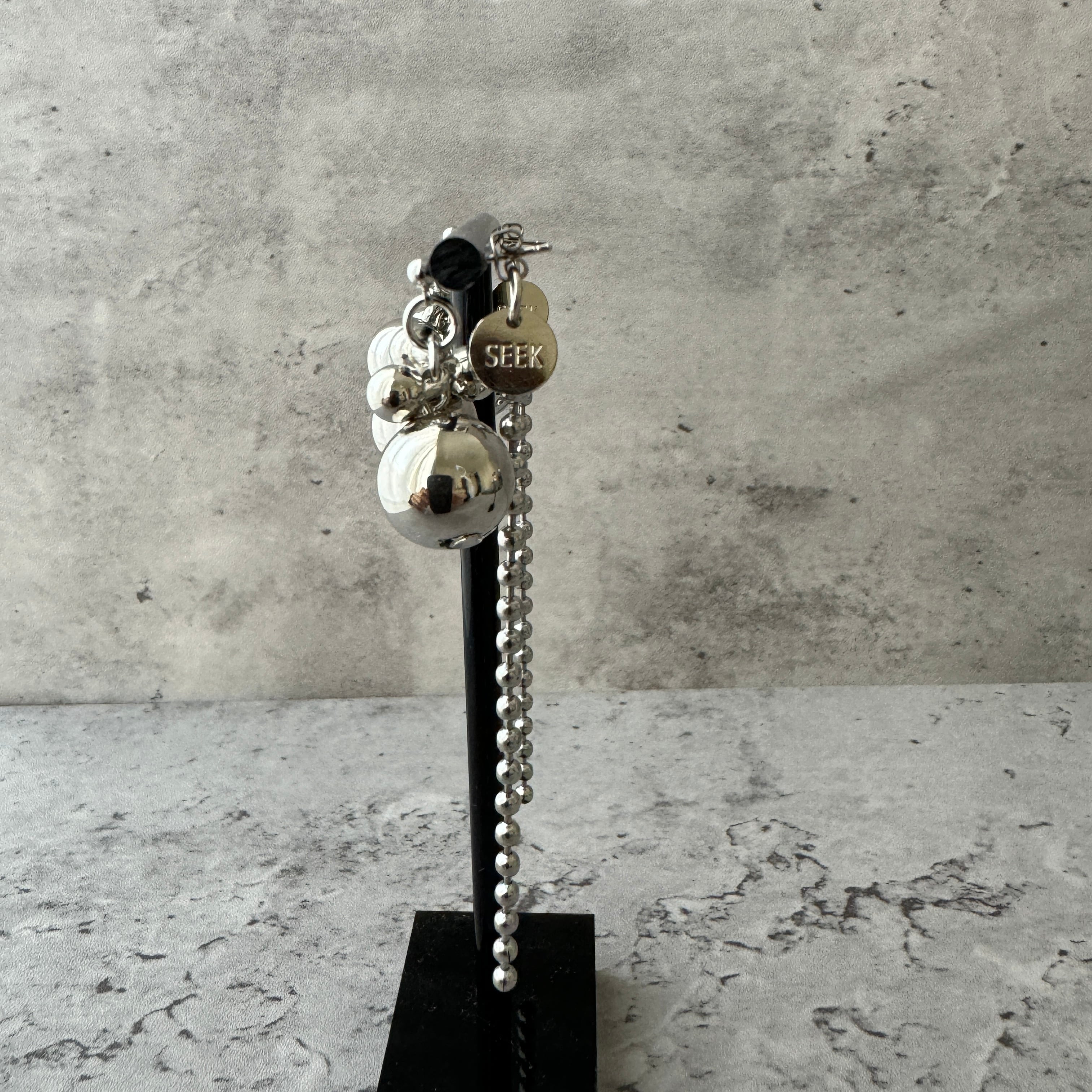 異なるサイズのシルバービーズを組み合わせたデザインが特徴的で、細かなディテールが美しさを引き立てます