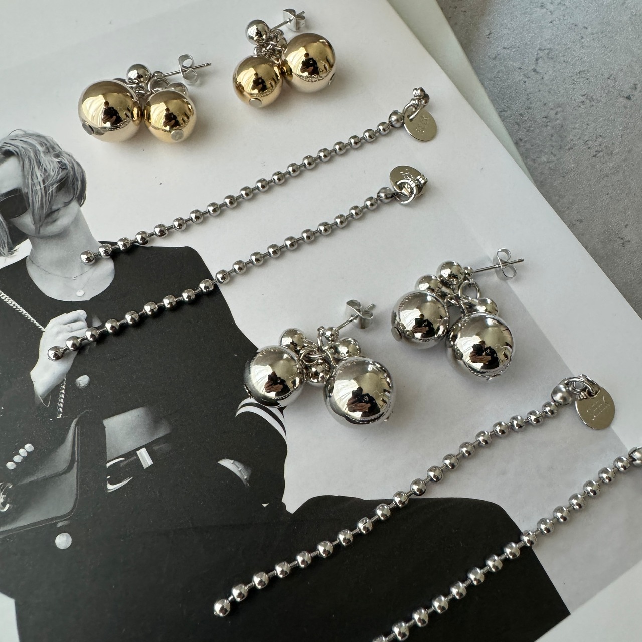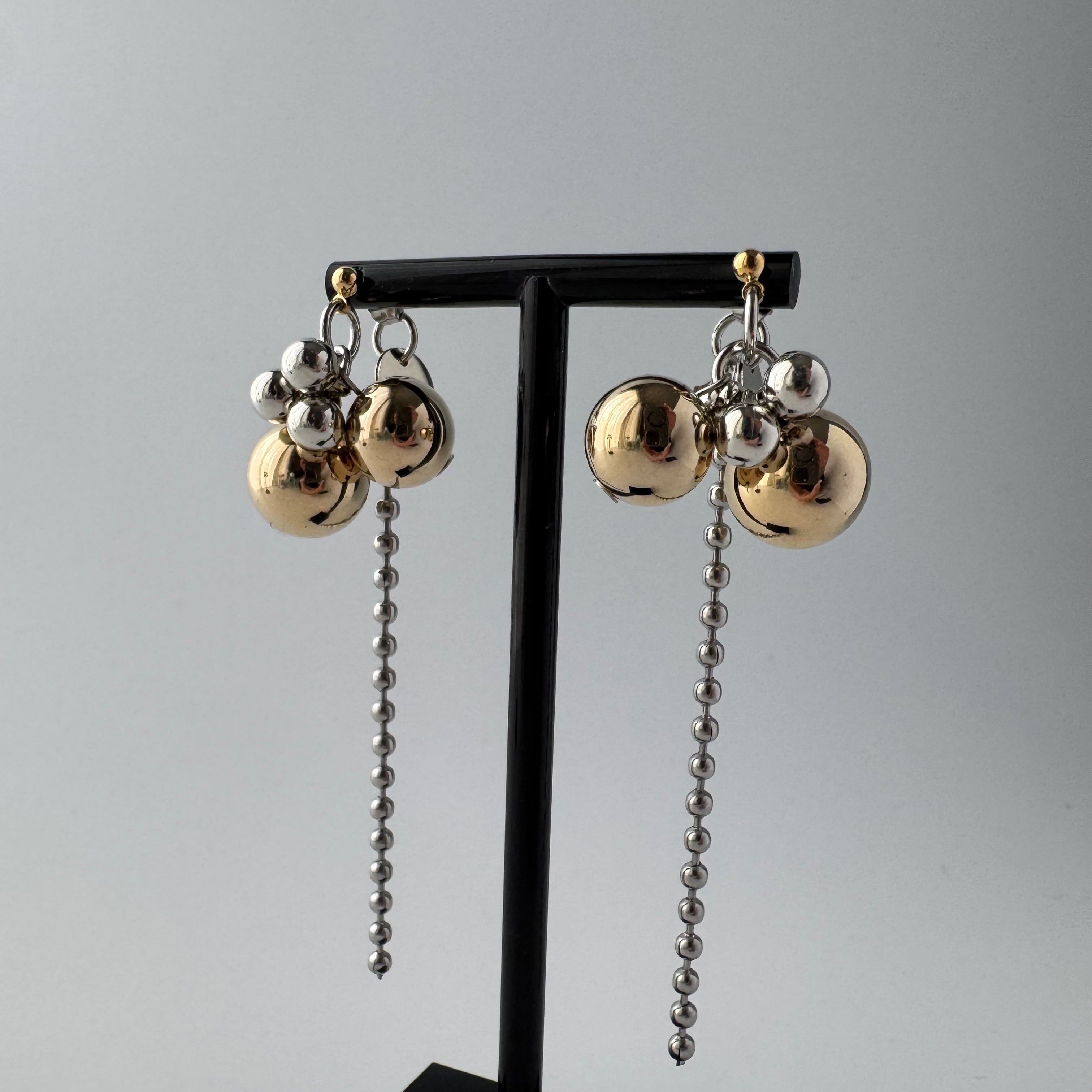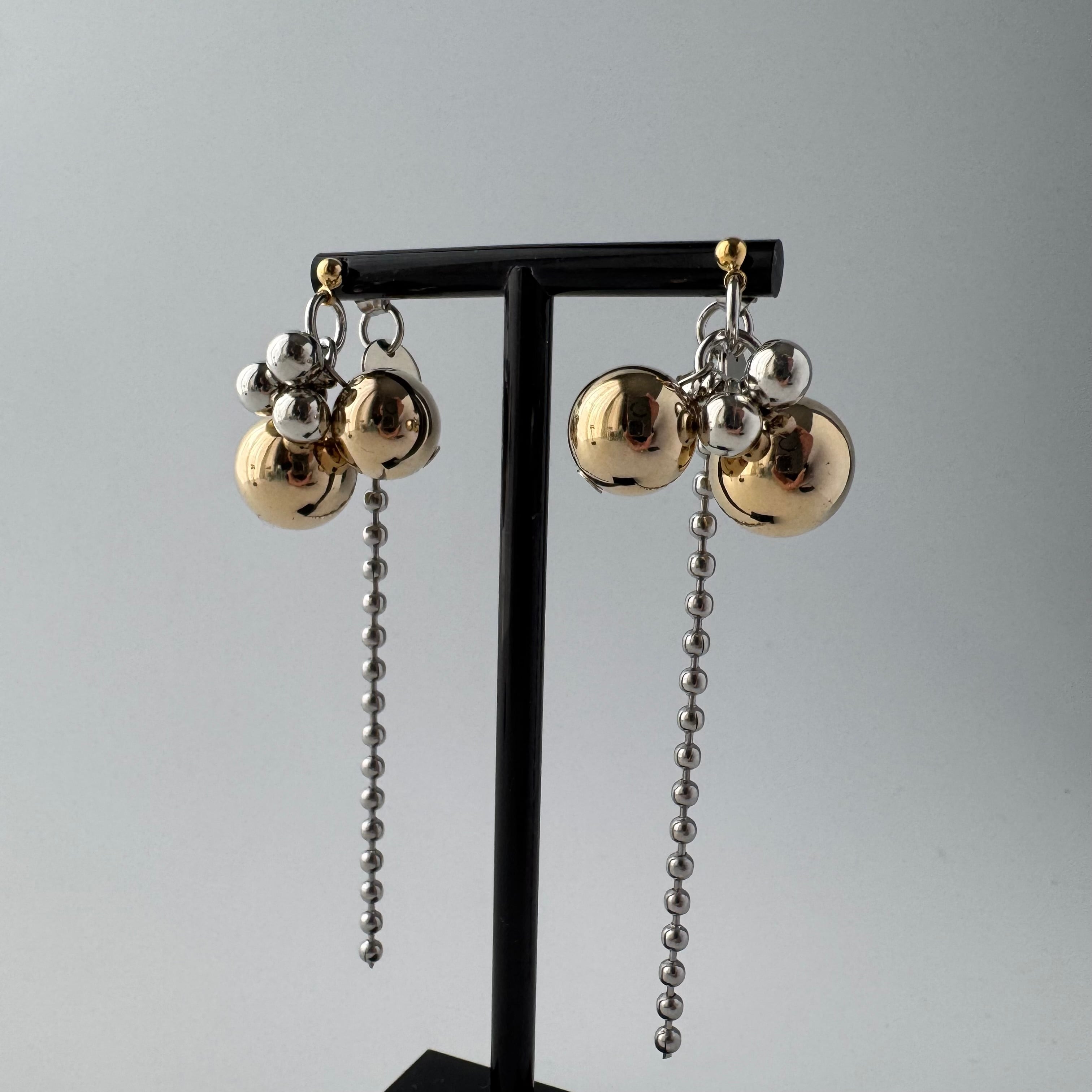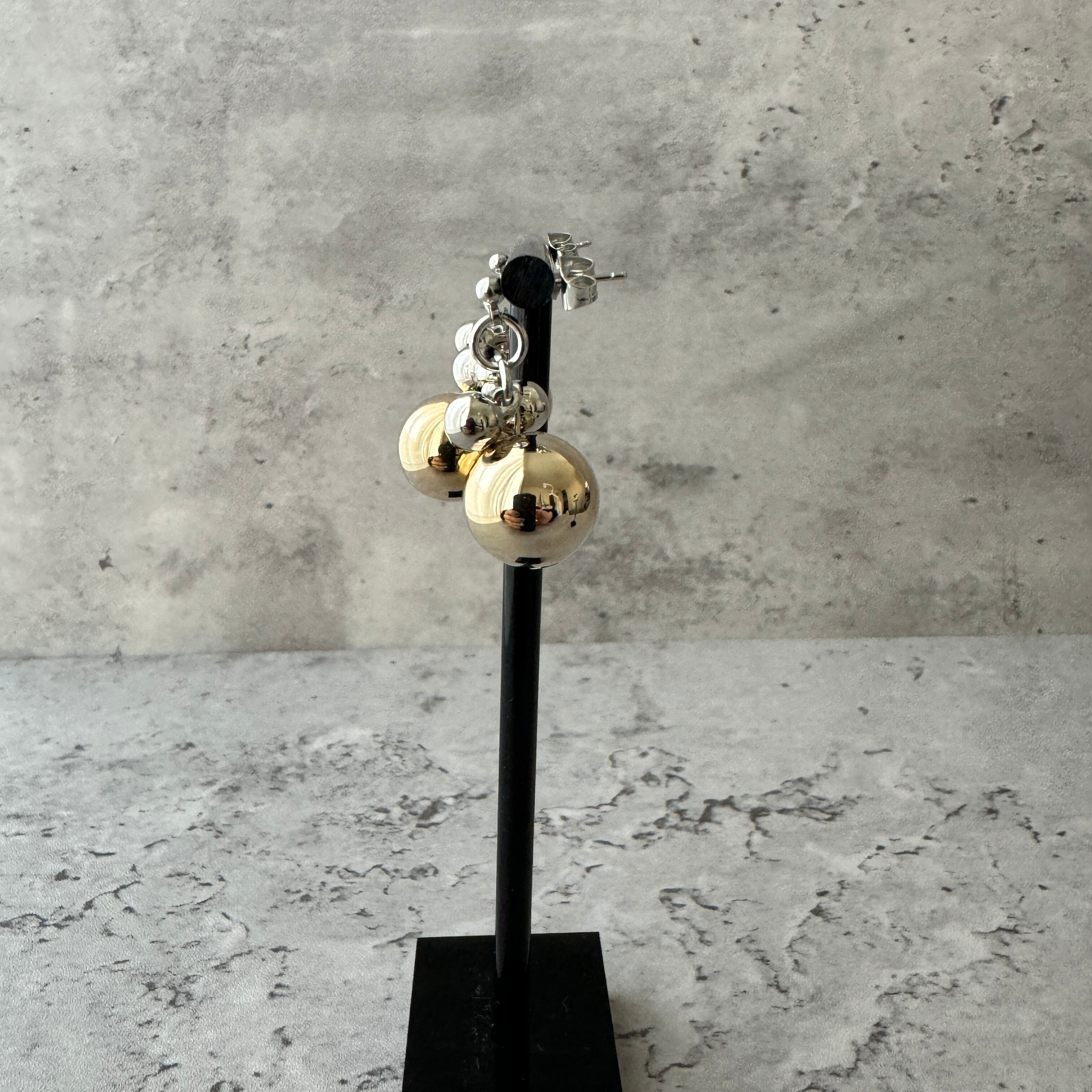 異なるサイズのシルバービーズとゴールドビーズを組み合わせたデザインが特徴的で、細かなディテールが美しさを引き立てます